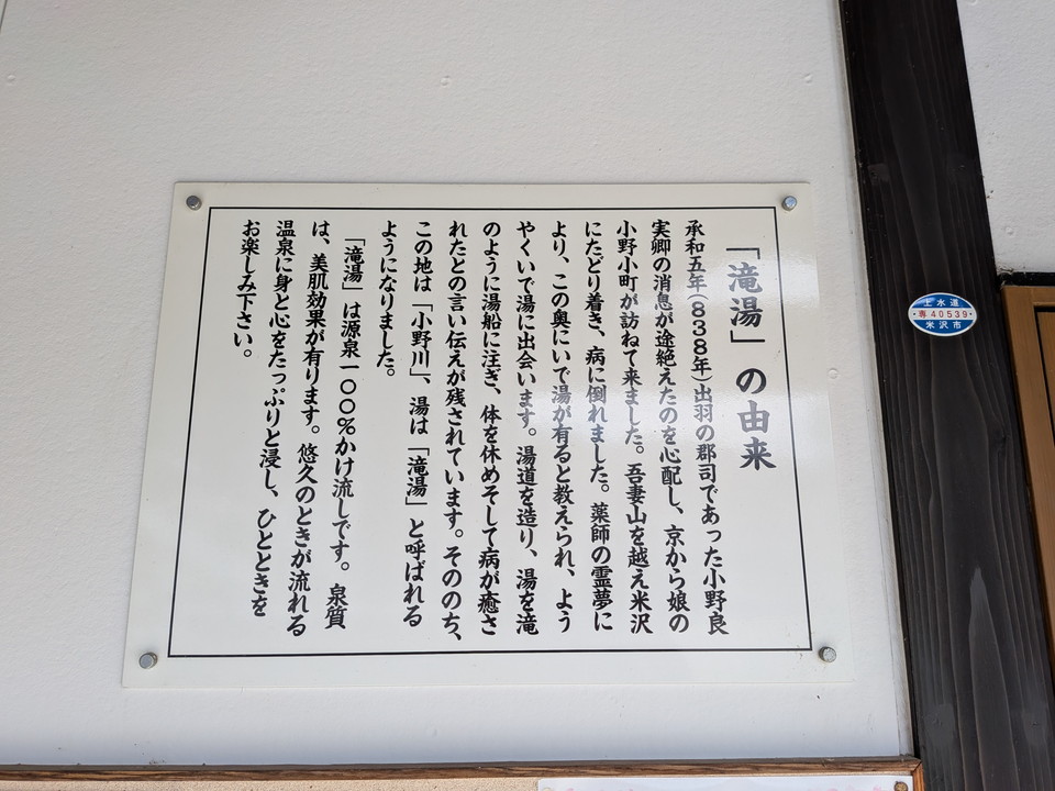 なんでも小野小町が父を訪ねて京都から東北へ旅をする途中、米沢市小野川町で病に倒れました。そこで薬師の夢のお告げを受け、小野川温泉を発見したとされているようです。