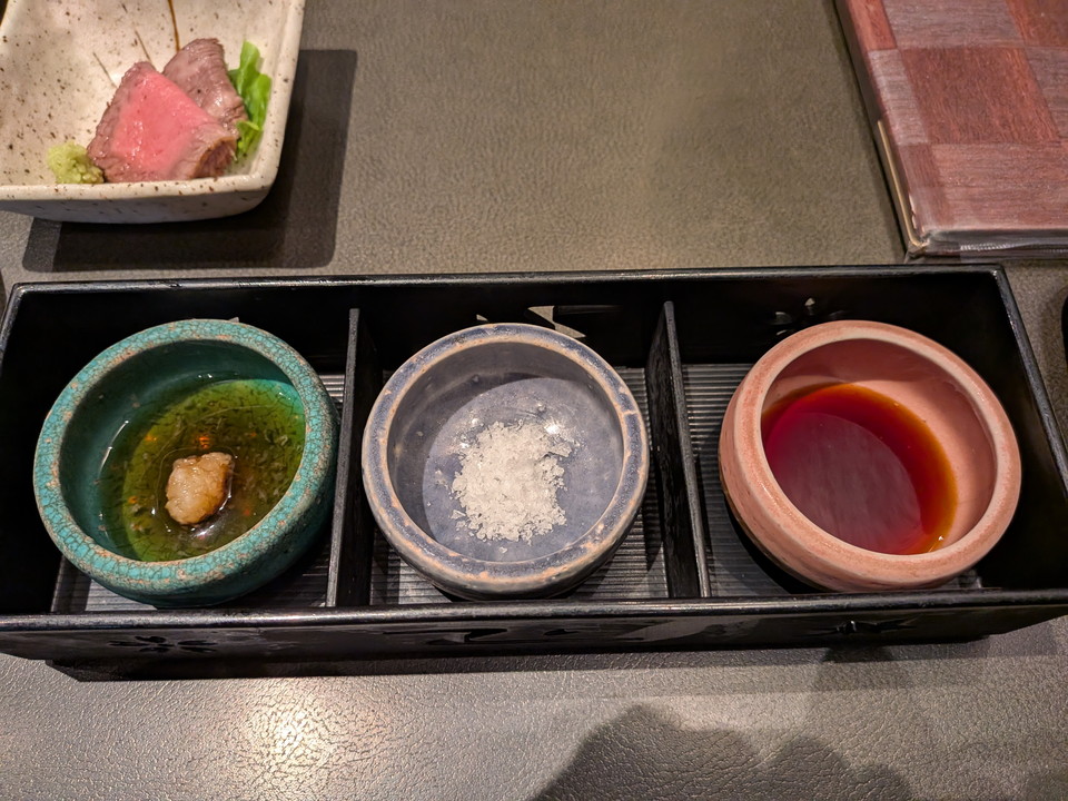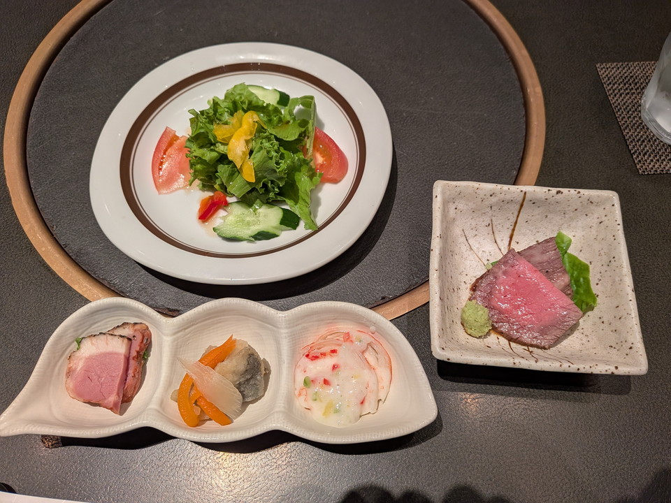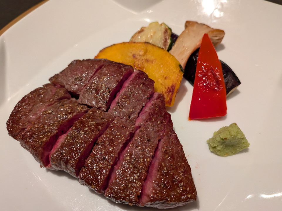 シャワーを浴びてゆっくりしたあと…、米沢牛でしょう。年寄りには脂身がキツいのでコスパで言えばこの肉(ランプ)で十分美味しく頂きました。
