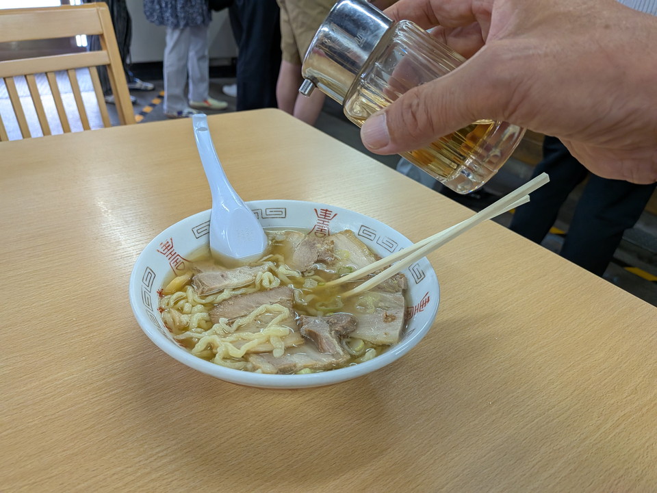 そして、オーダーしたのは肉そば(¥1,150)。とても美味しいのですが、歳をとったせいか、塩味がつよく感じました。中盤でお酢を加え味変したのは正解でした。よりおいしさが際立ちました。