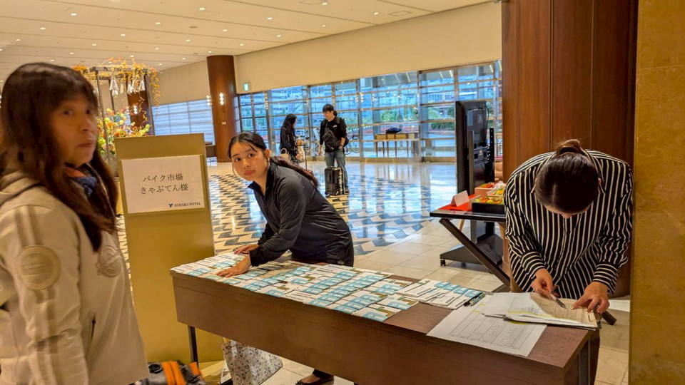 参加したバイクは約60数台、人員は90数名。これだけの台数のバイクを纏めて誘導するのは大変ですが、無線機を装備しているメンバーが中心に全体を誘導するいつもの方式でつつがなく全台数ホテルに到着しました。