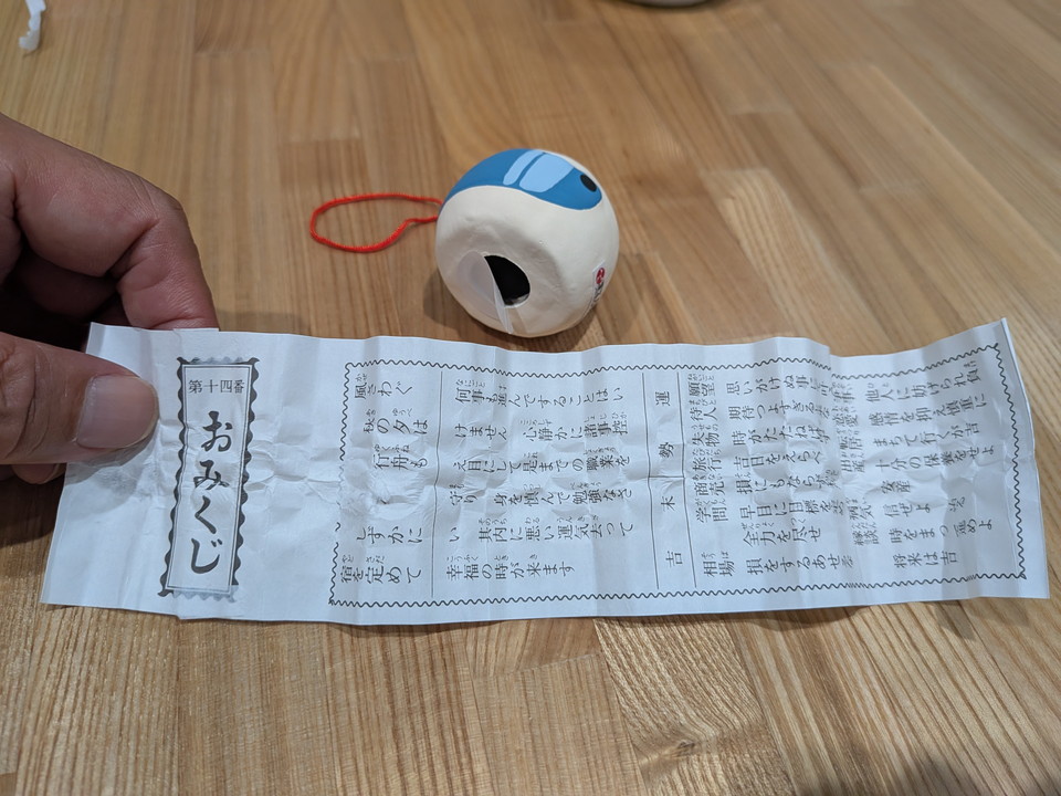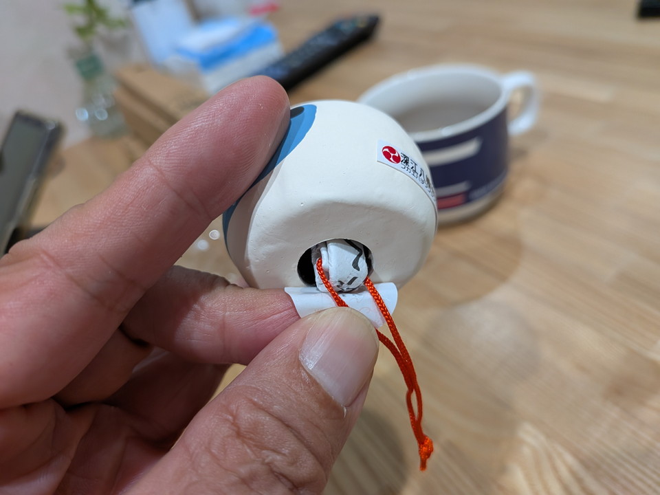 ちっちゃなヘルメットはおみくじです。羽咋市の深江八幡神社で頂けます。