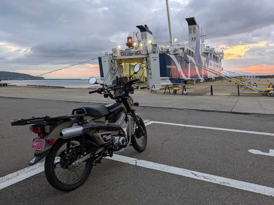 ハンターカブを降ろし、手続きを済ませ、6:30AMに出港。昨年の9月以来の礼文島です。