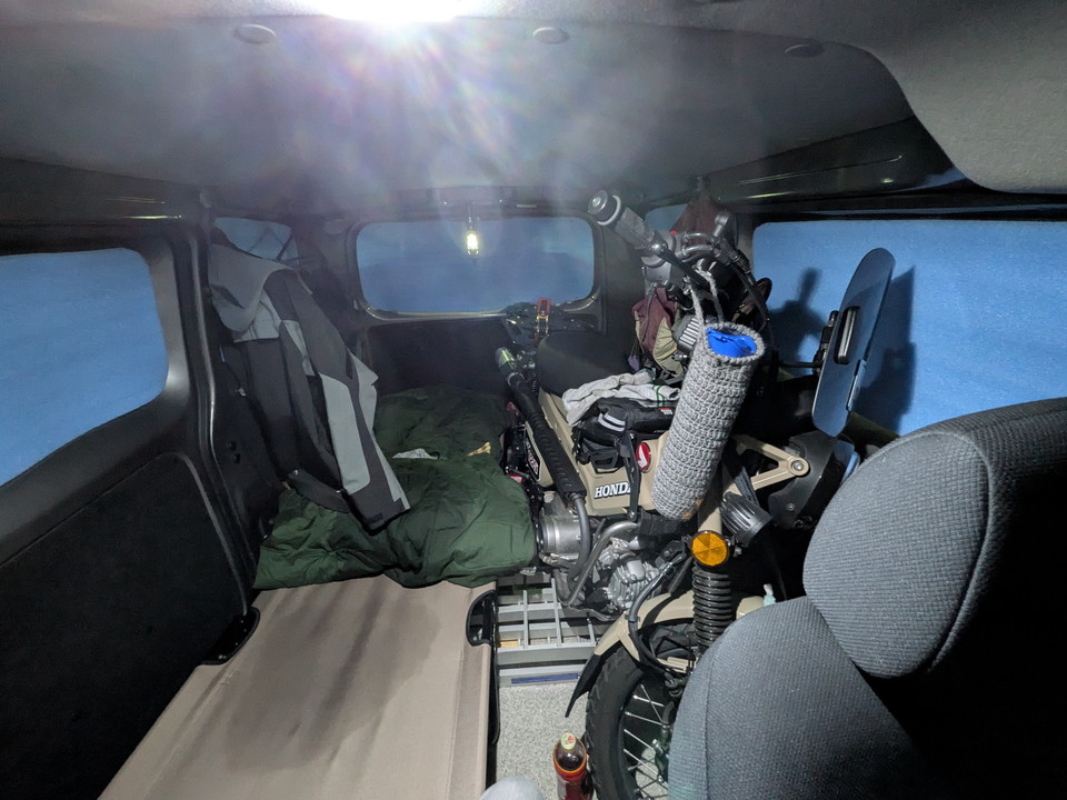ただ、エンジンをかけた状態であればFFヒーターは運転可能だったので、30分ほど運転し、寝る。夜中に起きたときに再度運転し、寝る。