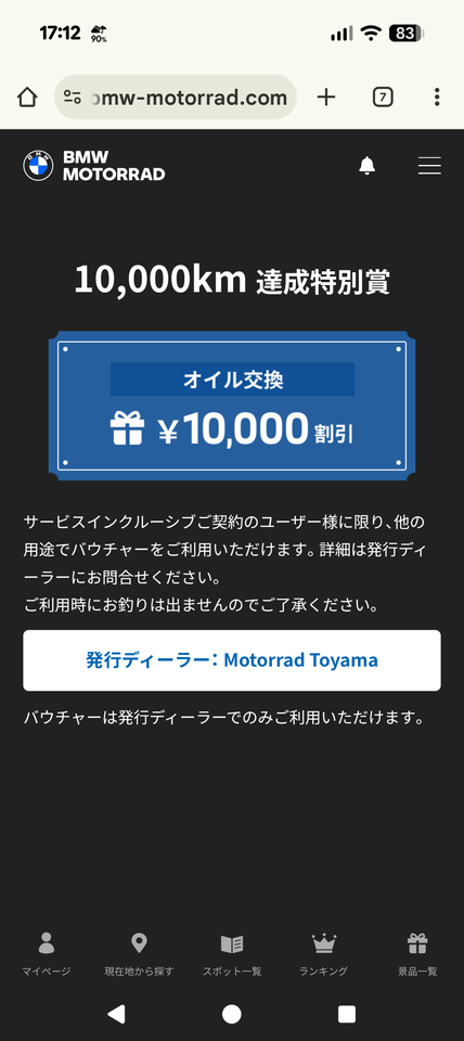 タイヤ交換については、「BMW MOTORRAD MILEAGE RALLY 2025 2ndシーズン」の10,000km達成特別賞を充てて貰いました。