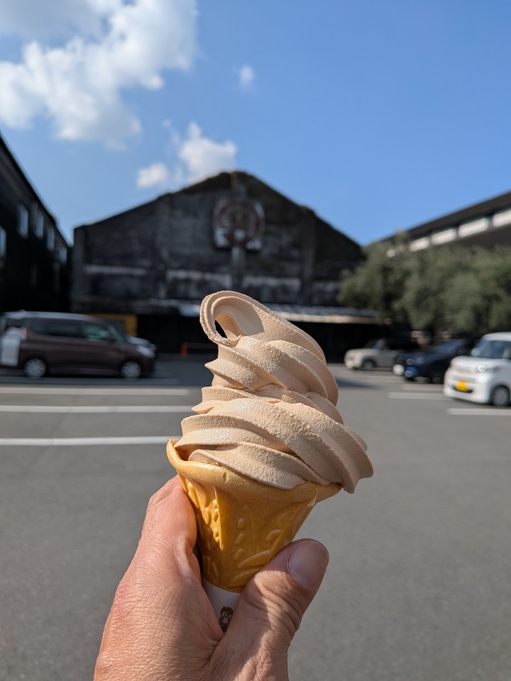 あまりに暖かい(20℃)ので、しょうゆソフトを頂き、12:35に出発です。