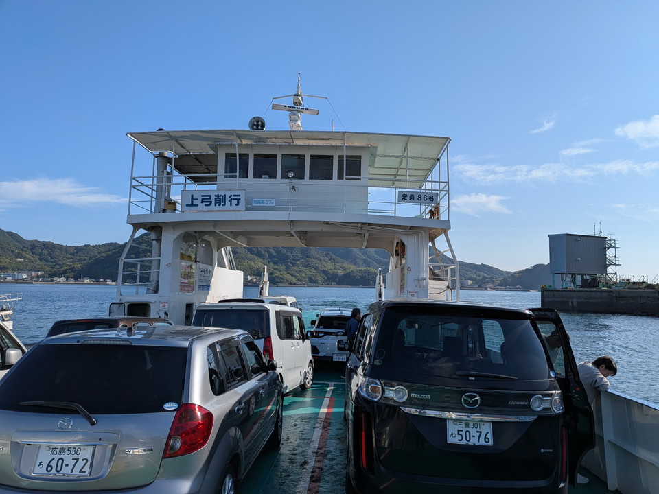 14:00便に乗船。約10分で上弓削港(上島町)に到着です。
