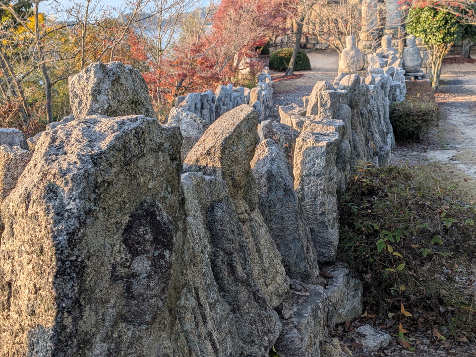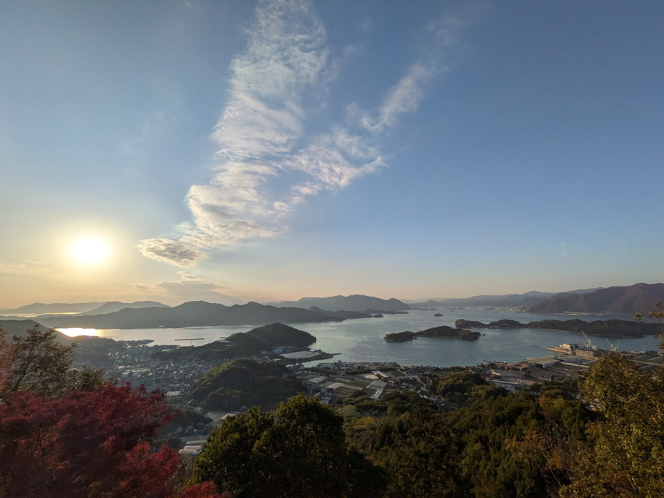まだまだ16:00前だったので、因島観光として白滝山展望台に行きました。キツい上りの先には絶景。そして五百羅漢。良い処でしたが、駐車場に戻る道を間違えてしまい、15分ほどロスりました。山道でひとりぼっちだったので、遭難したかと思いました。