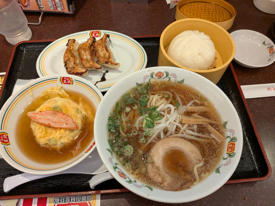 直ぐ隣に餃子の王将があったので、季節のおすすめセット『肉まんセット』(¥1,398)をオーダー。餃子の王将に間違いはありません。とても美味しく頂きました。