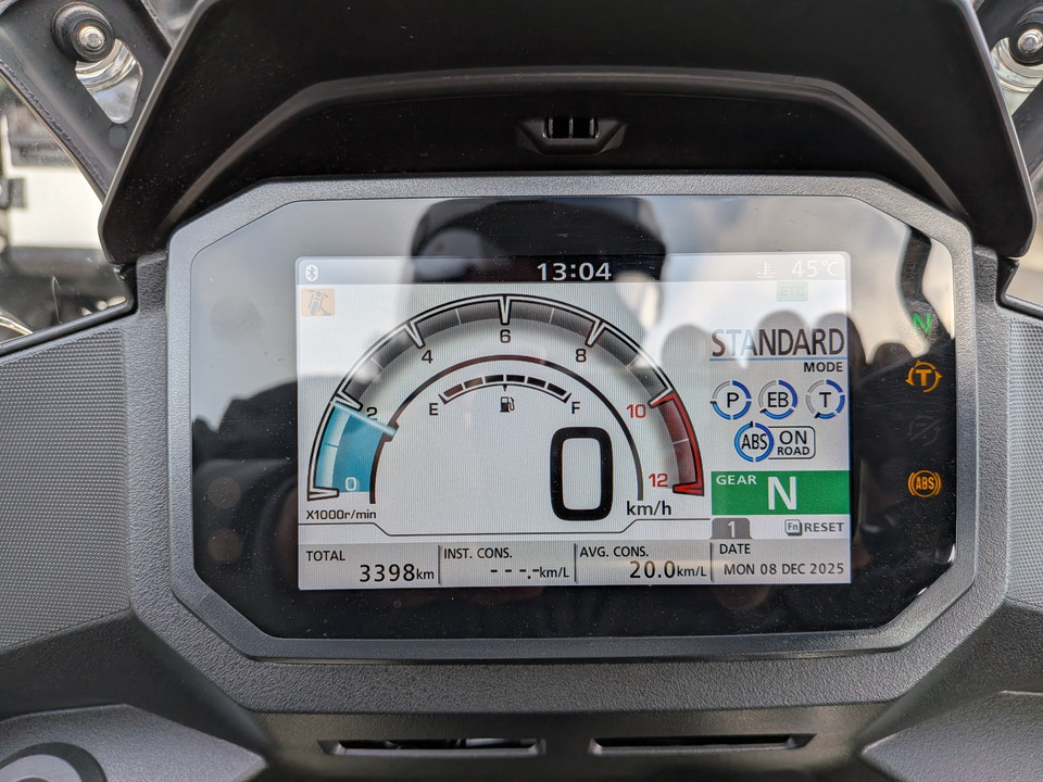 4.の足つき性ですが、試乗車にはローシートが装着されていたので両足母指球(ぼしきゅう)着地で全く問題なし。ただ、試乗終了後ノーマルシートを装着してもらって跨ったのですが、そんなに変わりません。ローシートの要否についてはも少し考える必要があります。
