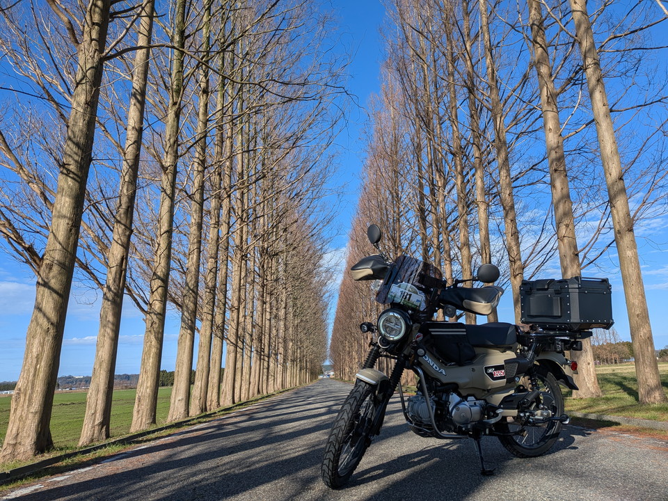 出発時の気温が12℃だったので、スピードの出ないハンターカブを引っ張り出し、ハンカバを装着しました。
