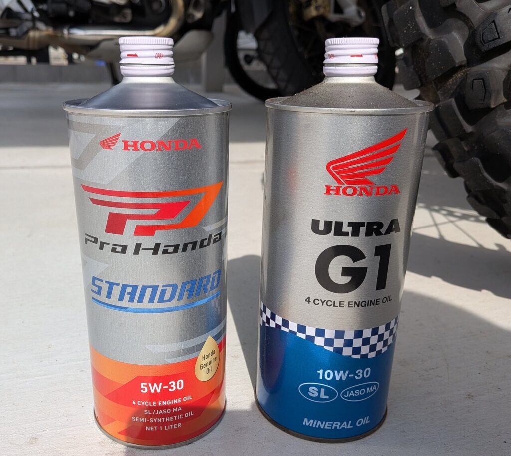MD36には、今は手に入らないULTRA G1(10W-30 : 昨年購入してたものが残っていた)。JA55には、Pro Honda STANDARD (5W-30)を使用。